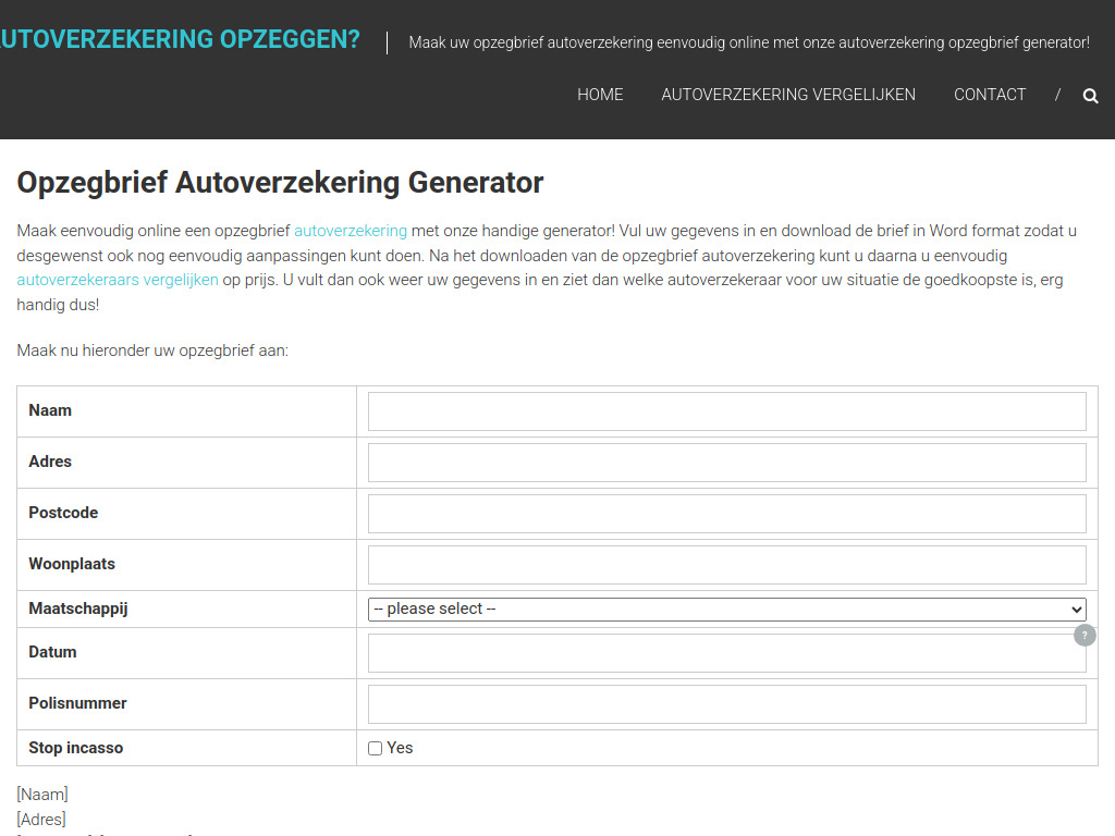 Op de website Opzegbrief-Autoverzekering.nl kunt u in een gemakkelijk overzicht meteen zien welke autoverzekering voor u het meest geschikt is. Wilt u er zeker van zijn dat u niet teveel premie betaald, dan is het zeker aan te raden deze website eens te bezoeken.